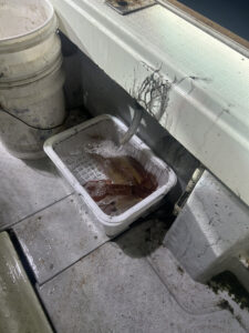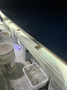 船の上でじっと竿を構えて…暗い海に光を当てて魚を寄せる、あの独特の雰囲気がたまりません。釣れた魚を締めて、クーラーへ。この一連の作業も、もはや手慣れたものです😄