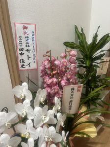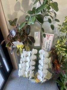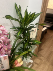 また、移転を記念して、多くの取引先の皆さまから温かいお祝いの品をいただきました。胡蝶蘭、観葉植物…社内がお花でいっぱいになり、スタッフ一同とても嬉しく、身の引き締まる思いです。