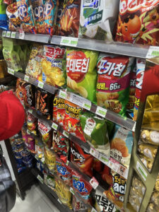 帰り道はコンビニにも立ち寄って、日本では見かけない韓国お菓子をお土産に買い込みました😄 見たことのないパッケージが並ぶお菓子コーナー、眺めているだけで楽しかったです!